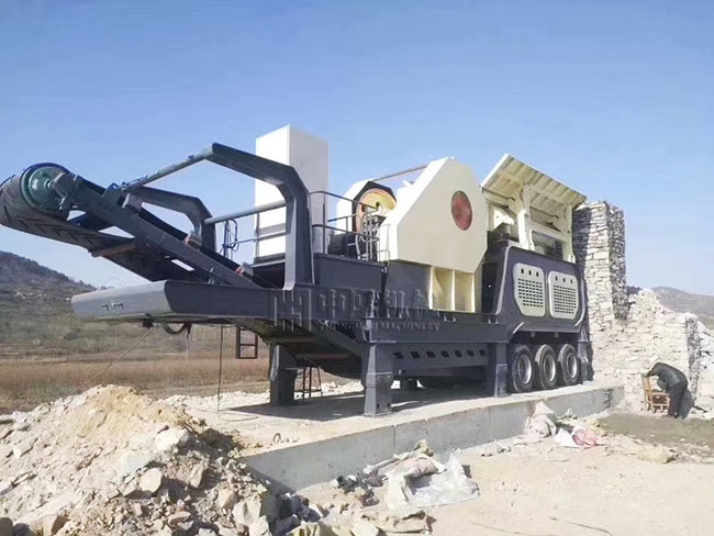 移動式破碎站機可以履帶行走、不需要運輸,并且不損傷路面,節省了大量基建及遷址費用;可以直接開到現場,并可隨原料開采面的推進移動或隨施工場地一起延伸。從而大大降低了運輸費用。